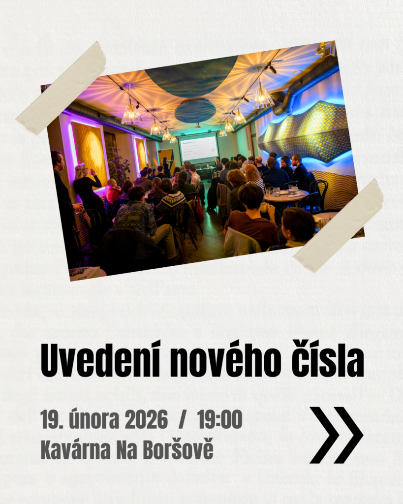 Srdečně zveme na představení nového čísla, které proběhne ve čtvrtek 19. února 2026 od 19:00 v Kavárně Na Boršově. Na akci bude možné si opatřit vlastní výtisk časopisu, poslechnout si moderovanou debatu, diskutovat s autorstvem nebo si jen užít večer v přátelské atmosféře nad hrnkem čaje nebo sklenicí piva. Těšíme se na vás!