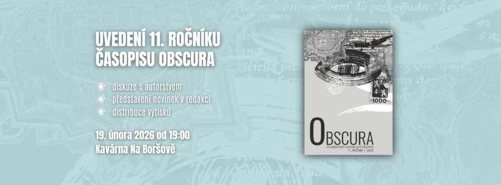 Jako minulý rok, tak i letos proběhne slavnostní uvedení nové Obscury, které bude mít opět podobu moderované diskuze mezi redakcí a autorstvem. Srdečně vás zveme 19. února 2026 od 19:00 do kavárny Na Boršově. Více informací ve facebookové události nebo na našem Instagramu.